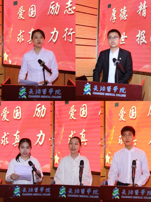 五四红旗团支部代表第一临床学院教改1801班团支部王砚、十佳大学生代表第一临床学院教改2002班扬芊芊、优秀共青团员代表医学影像学系影2001班杨涛分别发言。他们表示,作为新时代新青年,一定要认真学习领会习近平总书记考察中国人民大学重要讲话精神,不忘初心、牢记使命,以锐意进取、奋发拼搏书写长医青年学习、成长、奋斗、奉献的青春故事,在实现中华民族伟大复兴“中国梦”的征程中贡献青春力量,用优异的成绩迎接党的二十大胜利召开。