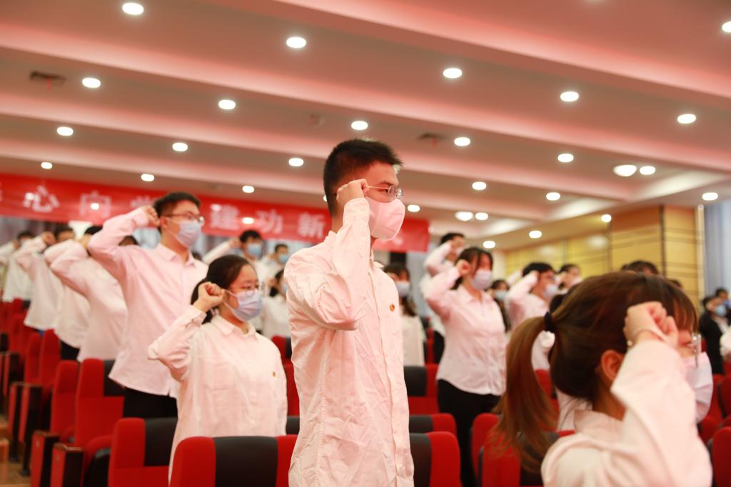 会议在雄壮的国歌声中拉开帷幕,与会人员重温了入团誓词。