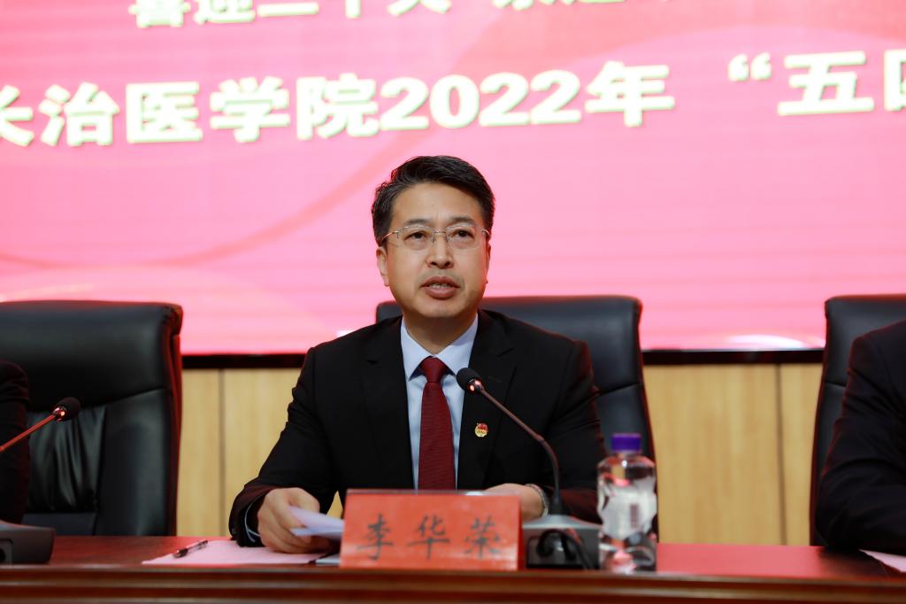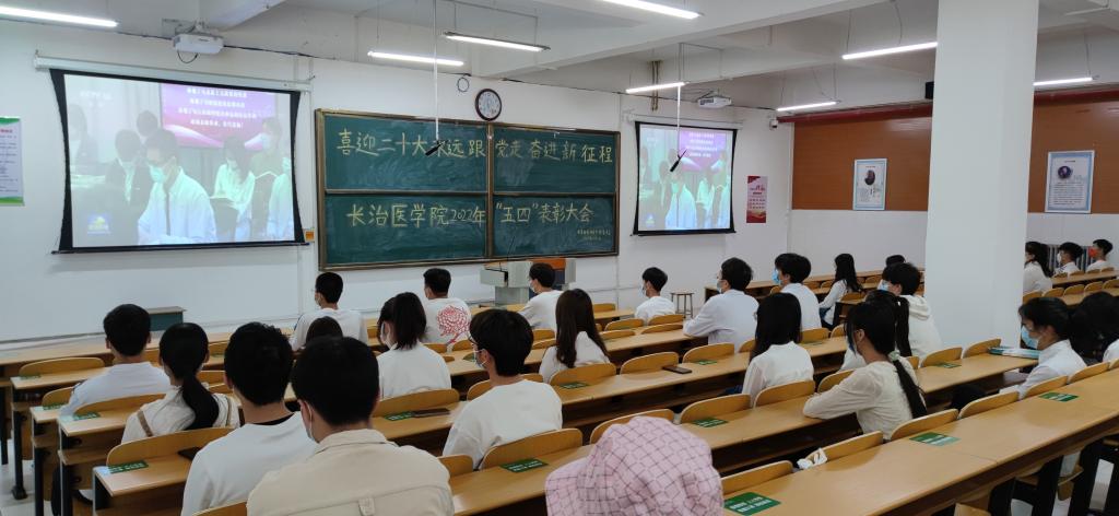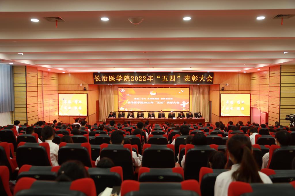 和风送暖春交夏,五月桃李竞芬芳。5月1日上午9:30,我校在临床技能中心学术报告厅召开“喜迎二十大 永远跟党走 奋进新征程”2022年“五四”表彰大会。学校党政领导李华荣、王金胜、张芳萍、徐建和、宋晓亮、李长江、胡春香、郑金平出席大会。教师工作部、党委学生工作部、党委办公室、校团委等职能部门负责同志,院系(部、处)党总支书记、分团委书记、青年教师代表,研究生、本科生学生代表,学生社团代表共计100余人参加会议。大会由党委副书记张芳萍主持。