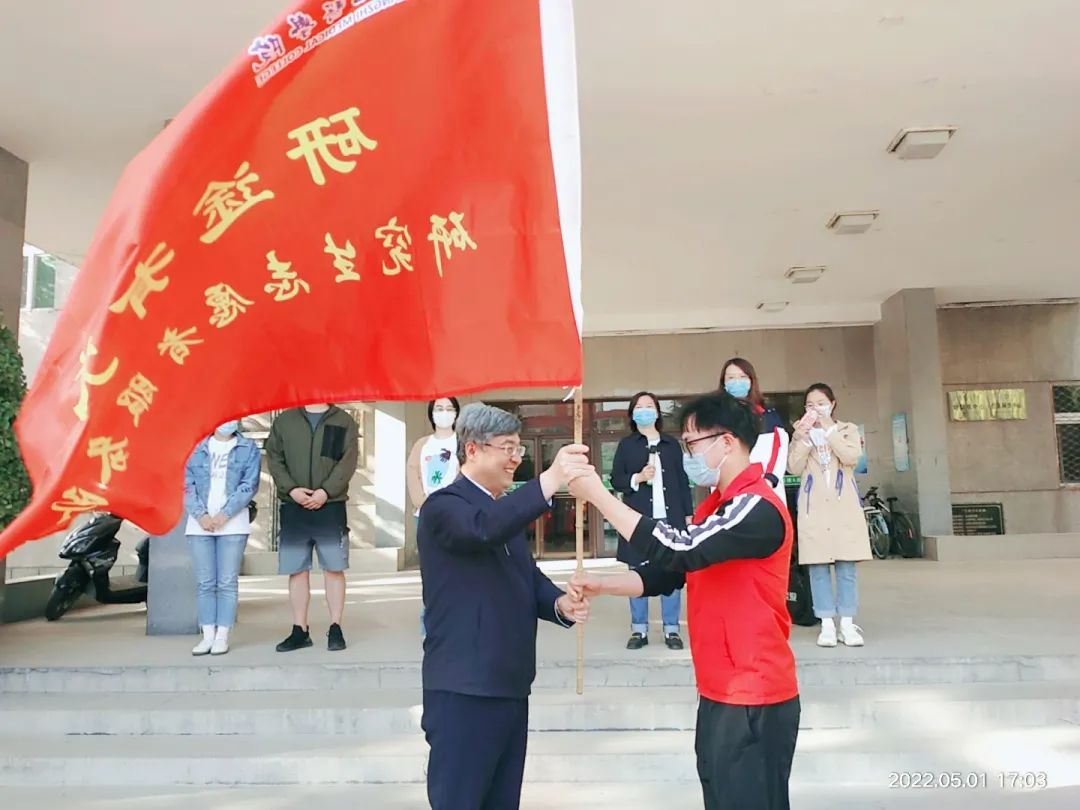 5月1日下午,“研途有光”志愿者服务队授旗仪式在明德楼前举行。校党委常委、副校长郑金平,研究生处处长韩玲娜、党总支副书记李萍,研究生处全体教工及研究生志愿者参加授旗仪式。授旗仪式由李萍主持。