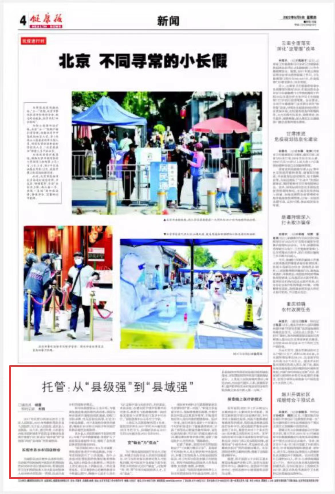 《健康报》对和平医院全面推进优质医疗资源下沉工作进行报道