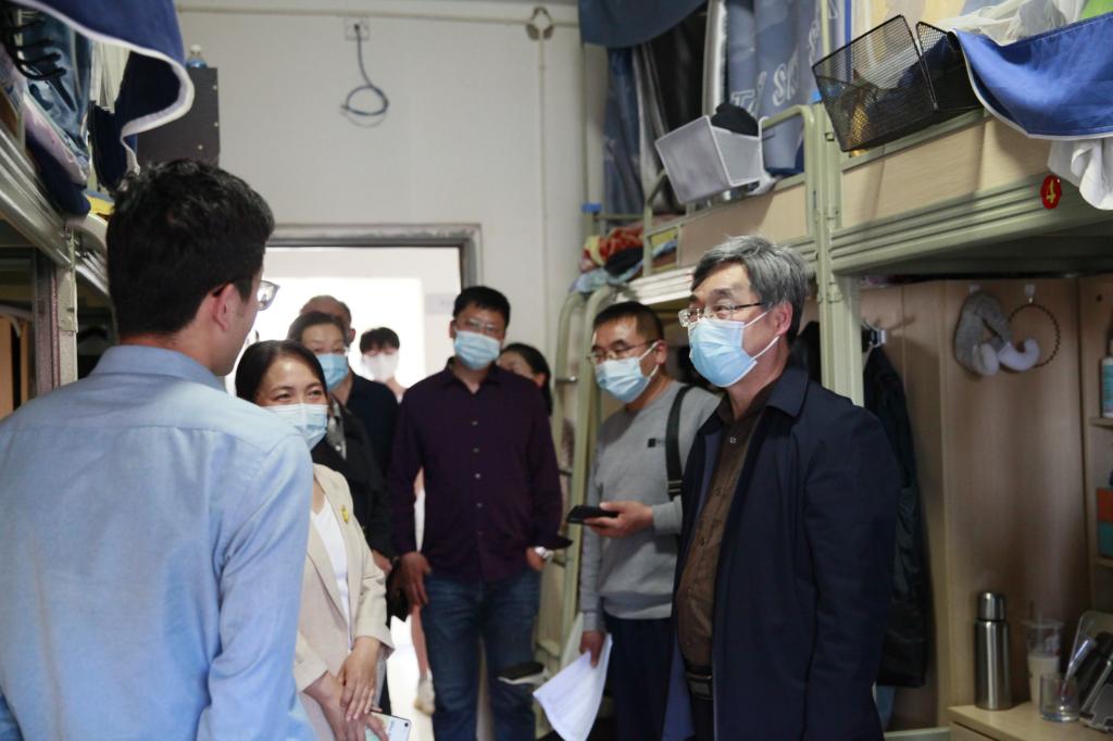 郑金平分别前往太行书院、白求恩书院进行了走访,走进学生宿舍与同学们亲切交谈,对同学们封校期间的日常生活、身体状况、网上学习情况进行详细了解,倾听了同学们的需求与建议,并表示学校将不断提升服务质量、优化服务流程,努力为同学们营造更加优质舒适的学习生活环境。