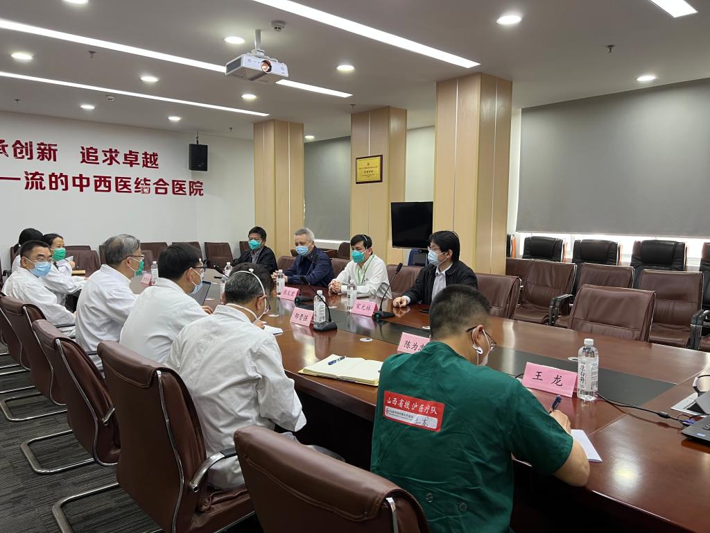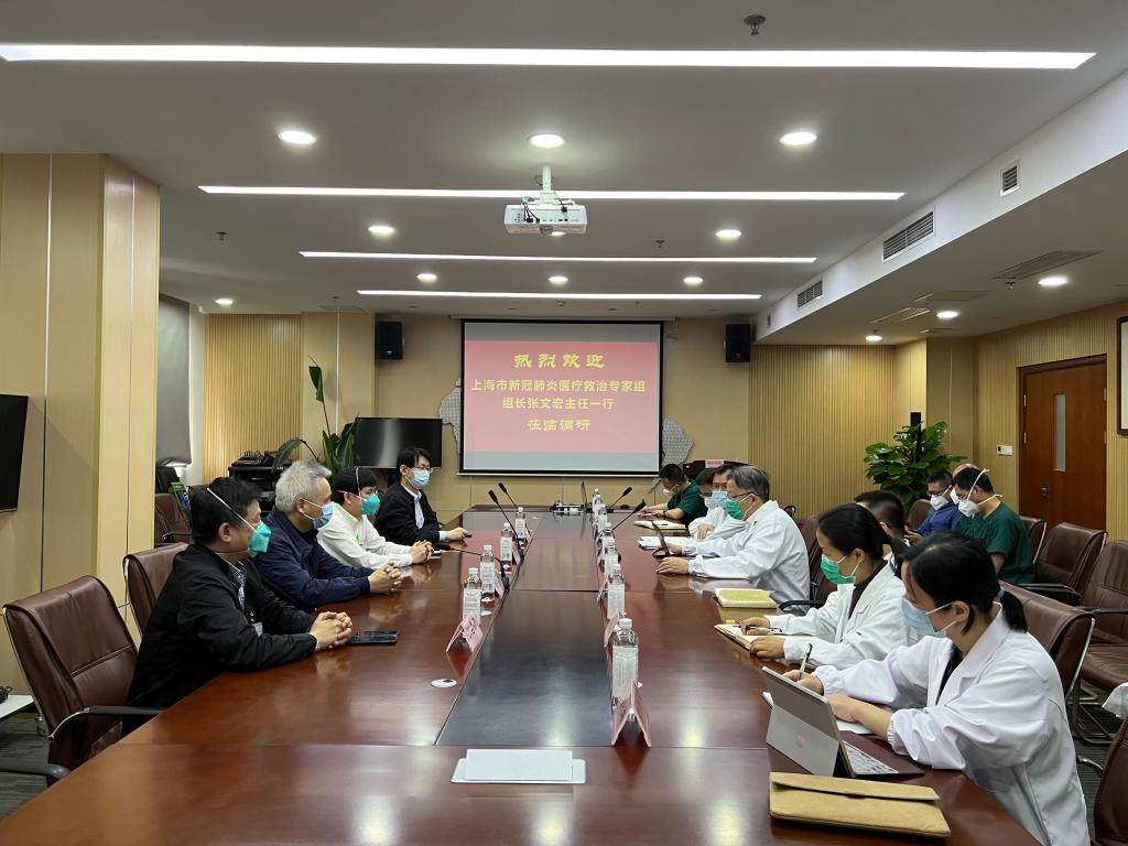 调研座谈会上,张文宏教授认真听取了院方关于新冠患者救治工作开展情况的汇报,山西援沪第11医疗队队长王龙汇报了对接工作进展情况及下一步的工作计划。张文宏教授对山西医疗队支援上海疫情防控工作表示了感谢,对我们对接工作的开展情况提出了表扬,尤其对我医疗队提出的分区、分层,专人专管重症患者的工作思路给予了充分肯定和高度认可,结合收治患者的情况,张教授详细解读了专家组总结的六条新冠肺炎患者的救治经验,参加调研指导的其他三位专家也结合各自的专业对下一步开展新冠患者的综合救治工作,提出了具体的要求和建议。