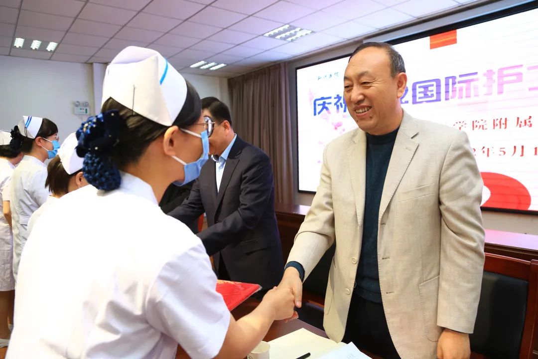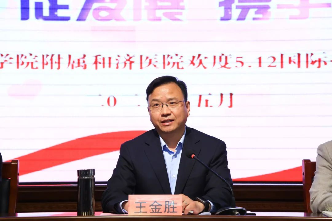 云霞开锦绣,万物启芳华,5月12日是第111个“5·12”国际护士节,今年的主题是“关爱护士队伍,护佑人民健康”。为弘扬南丁格尔精神,推动附属和济医院护理事业高质量发展,5月11日上午,医院在多功能会议室举办了以“强服务、促发展、携手向未来”为主题的“5•12”国际护士节表彰大会。校党委副书记、校长王金胜教授出席会议。医院党政领导、各科室护士长、受表彰的护士及护理部工作人员参加会议。