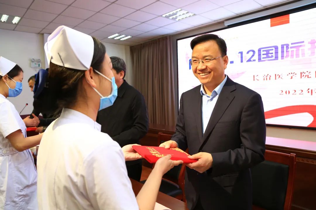 校党委副书记、校长王金胜教授作重要讲话,他指出,和济建院23年,在区域形成良好的服务品牌,护理工作者是推动这一品牌形成的一支重要力量。作为医学院校的附属医院,要注重护教研协同发展,共同提升。为继续做好医院护理工作,王金胜提出三点要求:一是要做志存高远的长医人,听党话跟党走,传承红色基因,筑牢信仰之基;二是要做业务精湛的和济人,赶学比超,精益求精;三是要做心怀家国的和济人,让个人成长与单位发展同频共振,同呼吸,共命运。