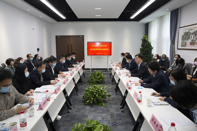 实地走访结束后,王金胜一行与长治高新区和相关企业进行了座谈。座谈会上,王金胜简要介绍了学校专业建设、人才培养和毕业生就业等方面的情况。他表示,走进长治高新区、走进企业是深入贯彻党中央、国务院和省委省政府“保就业、稳就业”决策部署,是强化校企衔接、校地合作,促进毕业生高质量就业的重要途径。他指出,推进学生实习实训基地建设创新人才培养模式;结合医学院校特点加强校企合作,服务地方经济社会发展;访企拓岗促进毕业生高质量就业;为企业和社会培养更多的优秀人才是学校教育的初衷和目标。他希望与高新区和企业共同努力进一步推动产学研融合,为毕业生搭建就业平台,实现学生、学校、企业和社会多方共赢。