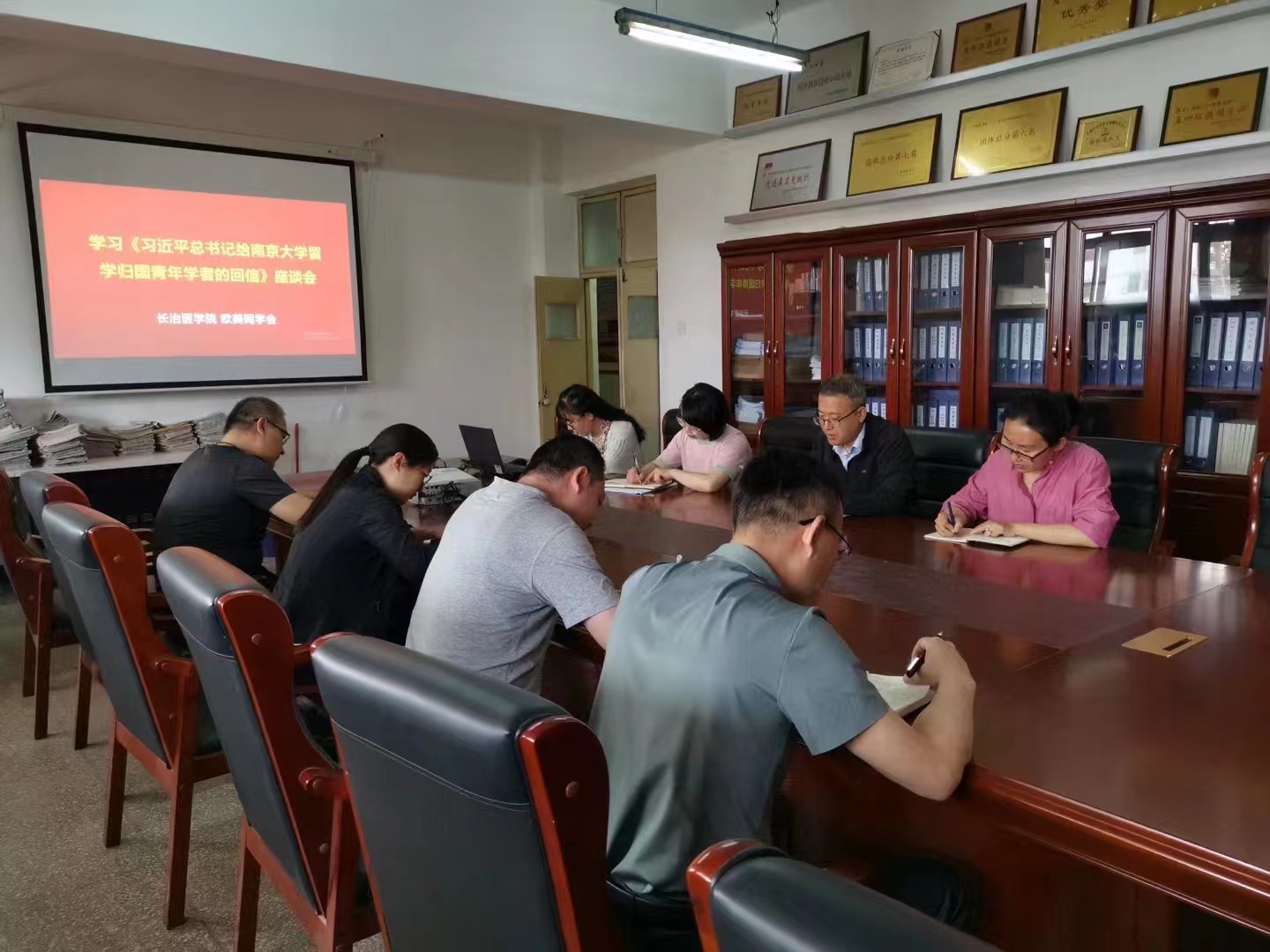 习近平总书记给南京大学留学归国青年学者的回信在我校欧美同学会·留学人员联谊会及广大留学人员中引发热烈反响,引起强烈共鸣。5月26日下午,我校欧美同学会·留学人员联谊会在明德楼五层会议室召开座谈会,专题学习贯彻《习近平给南京大学留学归国青年学者的回信》。