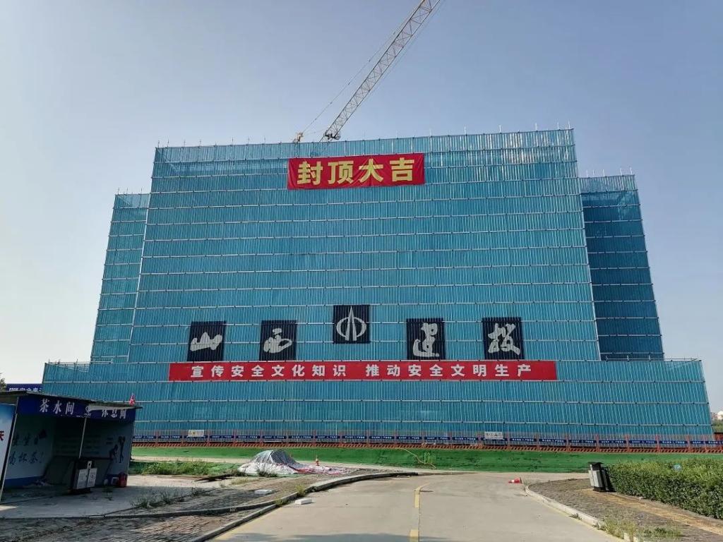多功能教学楼主体结构封顶,标志着该项目结构部分完成,即将进入安装和装饰装修阶段。