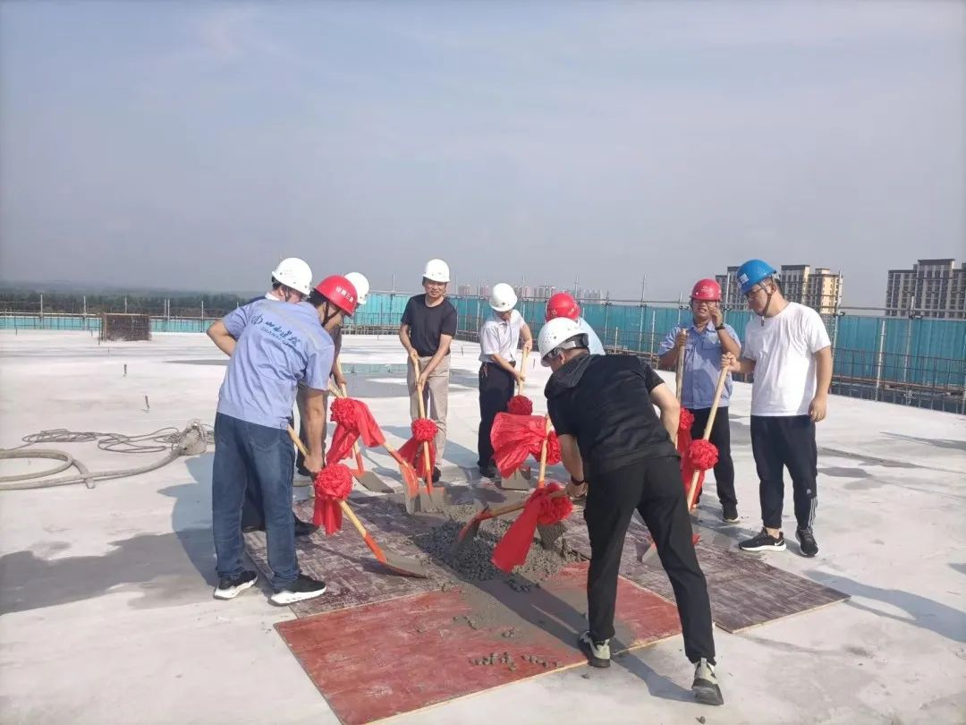 经过150天有序而紧张地施工,8月13日上午8时30分,我校五龙校区多功能教学楼主体结构按计划如期封顶。副校长李长江,基建处处长张晓清,山西三建建设常务副经理靳忠敏及项目建设、监理、施工单位各参建人员参加了封顶仪式。