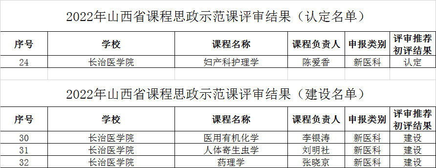 6月8日,山西省教育厅发布了《关于全省普通本科教育课程思政示范课程名单的公示》,我校推荐参评的4门课程全部获批,其中护理学系陈爱香老师负责的《妇产科护理学》获批立项认定,药学系李银涛老师负责的《医用有机化学》和张晓京老师负责的《药理学》、基础医学部刘明社老师负责的《人体寄生虫学》获批立项建设。