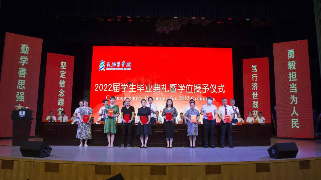 骊歌唱响,青春启航。6月21日上午,我校以“线上线下结合,云端现场相聚”的方式,隆重举行2022届学生毕业典礼暨学位授予仪式,热情欢送2022届2609名毕业生走出校园,踏上人生新征程。线下典礼在科学会堂举行,学校党政领导、校学位评定委员会成员、各院系部处负责人、毕业班辅导员、毕业学生代表参加。由于疫情未能返校的部分毕业生和亲友通过观看视频直播的方式线上参加典礼。典礼由校党委书记李华荣主持。