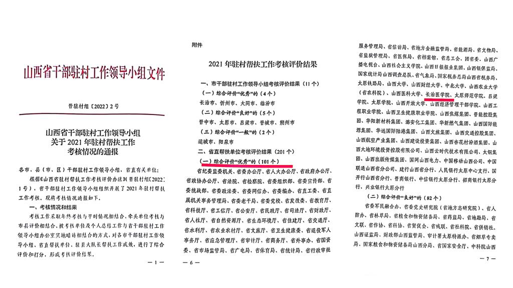 近日,在山西省干部驻村工作领导小组关于2021年驻村帮扶工作考核中,我校驻村帮扶工作被山西省干部驻村工作领导小组综合评价为“优秀”。
