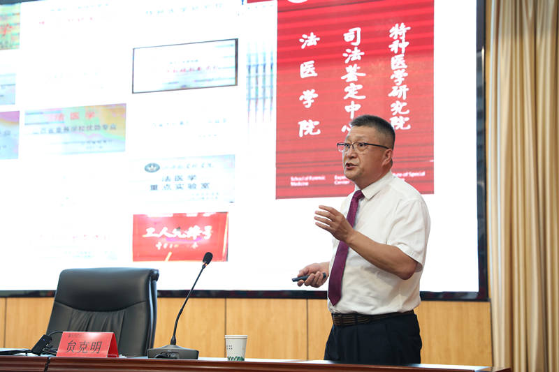 贠克明教授从山西医科大学法医学院的现状切入,讲述了法医学院学科建设的艰辛历程和辉煌成就,分享了自己与法医学院共同成长的16点感悟。他提到,因为热爱,所以坚持,院系领导为院系谋发展要“不知足”,见机遇要“顺杆爬”,学习要“无止境”,同时也要立目标、有格局、勇担当、常感恩、享快乐。