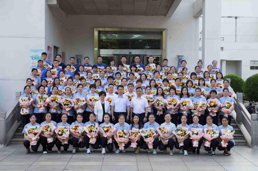 在庆祝我党成立101周年之际,为汲取先进典型的智慧和力量、推动“一校五院”高质量发展,6月24日下午,我校在临床技能中心学术报告厅召开庆祝中国共产党成立101周年暨援沪医疗队先进事迹报告会。学校党政领导李华荣、王金胜、张芳萍、胡春香,援沪的97名医护、援豫援吉的16名医护应邀出席报告会,全校处级干部到场聆听。报告会由党委副书记张芳萍主持。
