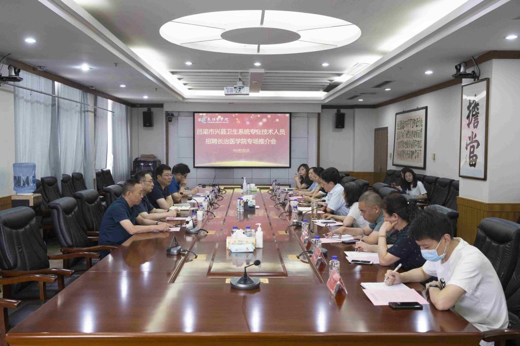 为贯彻党中央、国务院关于高校毕业生就业工作的决策部署,促进高校毕业生更加充分更高质量就业,落实省委、省政府关于深化省校合作、校地合作工作部署,深入推进访企拓岗促就业工作,拓宽毕业生就业渠道,7月1日上午,我校联合吕梁市兴县人民政府,在科技楼11层1号会议室举办了吕梁市兴县卫生系统专业技术人员招聘长治医学院专场推介会。