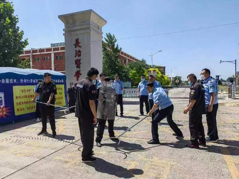 为进一步提高学校反恐防暴工作的应对能力,及时有效预防校园暴恐事件的发生,近日,我校保卫处联合上党区公安分局、苏店派出所在五龙校区组织开展了反恐防暴应急演练。上党区公安局、苏店派出所领导以及部分干警现场指导,学校保卫处全体工作人员、保安队员参加活动。