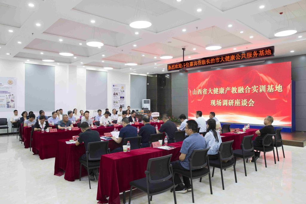 7月6日下午,山西省产教融合促进会专家组在会长赵鹏带领下一行5人深入位于潞城区的长治大健康公共基地(长治医学院大健康产业学院),就我校与山西世元健康教育产业发展有限公司、山西亿雅思文化传媒有限公司合作共建的长治医学院省级大健康产教融合实训基地进行实地调研,山西省发改委科教处副处长刘国强、甘宏志随队调研。校党委副书记、校长王金胜,副校长宋晓亮,相关部门负责人;潞城区副区长杜进才,长治市发改委相关部门负责人刘李斌、盖国兵,山西世元健康教育产业发展有限公司董事长王潞斌,山西亿雅思文化传媒有限公司董事长党佳佳等参加调研会。宋晓亮主持调研会并致欢迎辞。