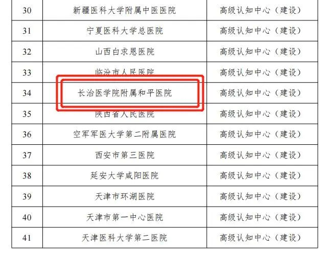 近日,国家卫生健康委建设和继续教育中心公布了国家高级认知障碍诊疗中心遴选结果,长治医学院附属和平医院成功入选!此次通过遴选的国家高级认知障碍诊疗中心全国共113家,山西省3家入选,附属和平医院是晋东南地区唯一一家入选单位。