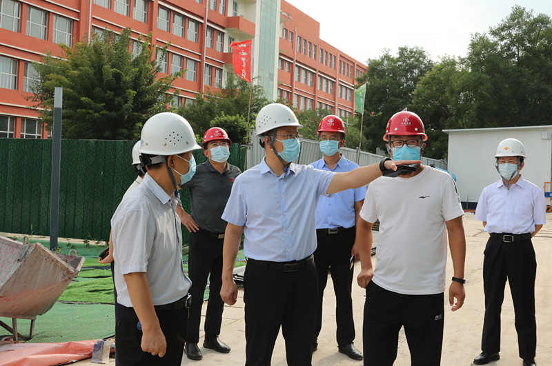校领导一行先后走访查看了在建的多功能教学楼、日新楼、校医室等重点场所,通过现场“走流程”,详细了解开学前准备工作的落实情况。