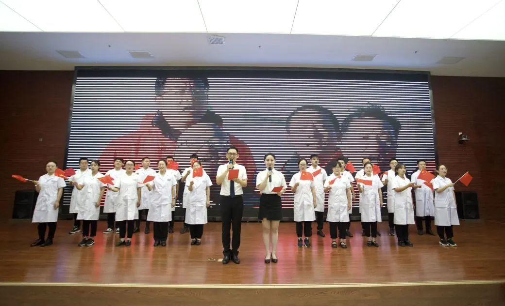 医院院长李红倬为新入职医师授牌(胸牌)并讲授入职第一课,寄希望于每一位和平医师争做优秀的和平接棒者,传承和平红色基因,为人民健康事业作出贡献;鼓励年轻医师青春与梦想同行,始终为梦想而努力,做一个终身学习的和平人。