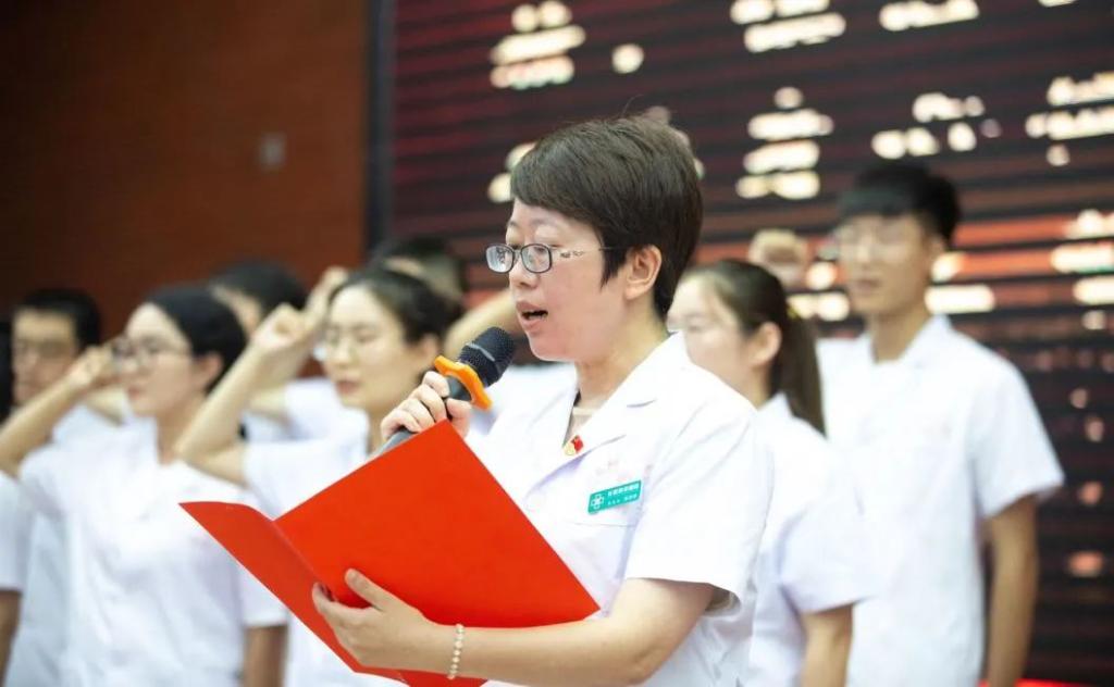 “我志愿献身人类的健康事业,自觉维护医学的尊严和神圣……”,在医务科副主任郭婷婷带领下,全场新医师代表举起右拳,庄严宣誓,他们以字字千钧的铮铮誓言宣告在新的人生起点上,切实担负起增进人民健康福祉的光荣使命!