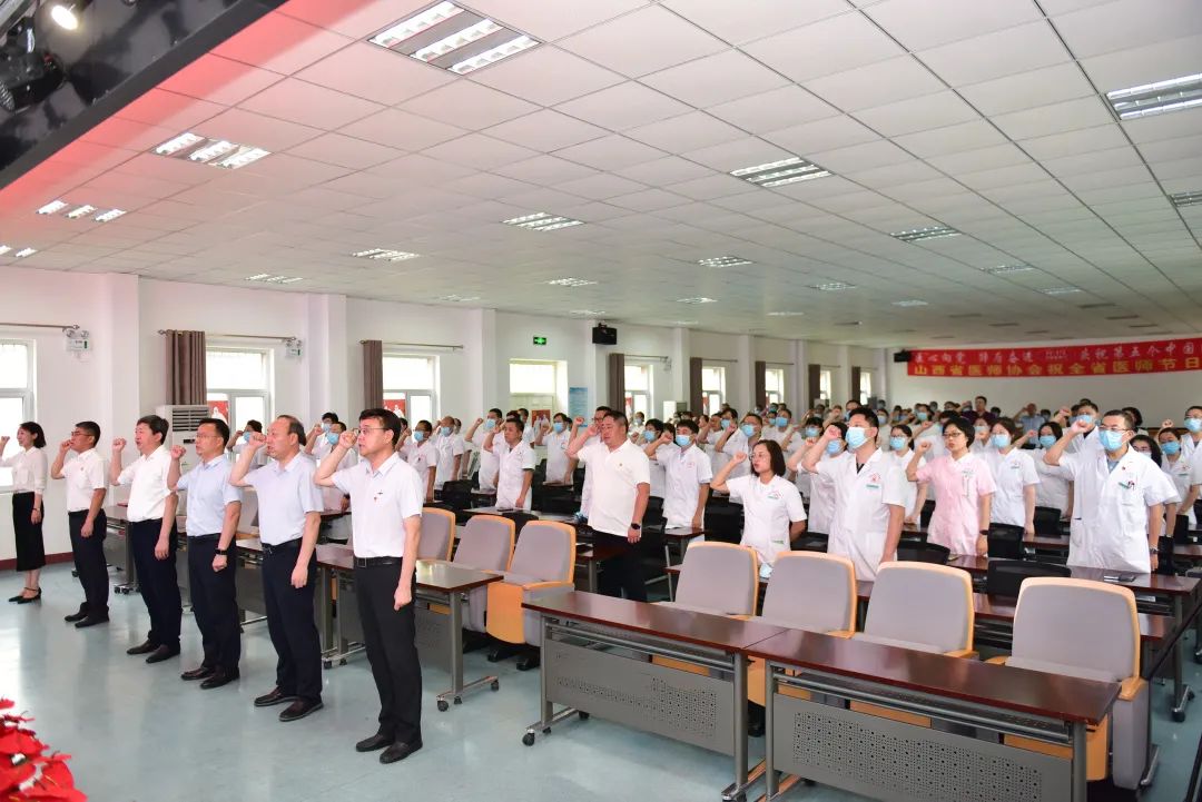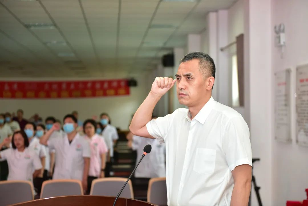 在场全体医师重温《中国医师宣言》,由医院副院长郭伟领读誓词。铿锵有力的宣言发自肺腑,激励广大医师们不忘初心、砥砺前行,提升了医务工作者的职业荣誉感、归属感与获得感。