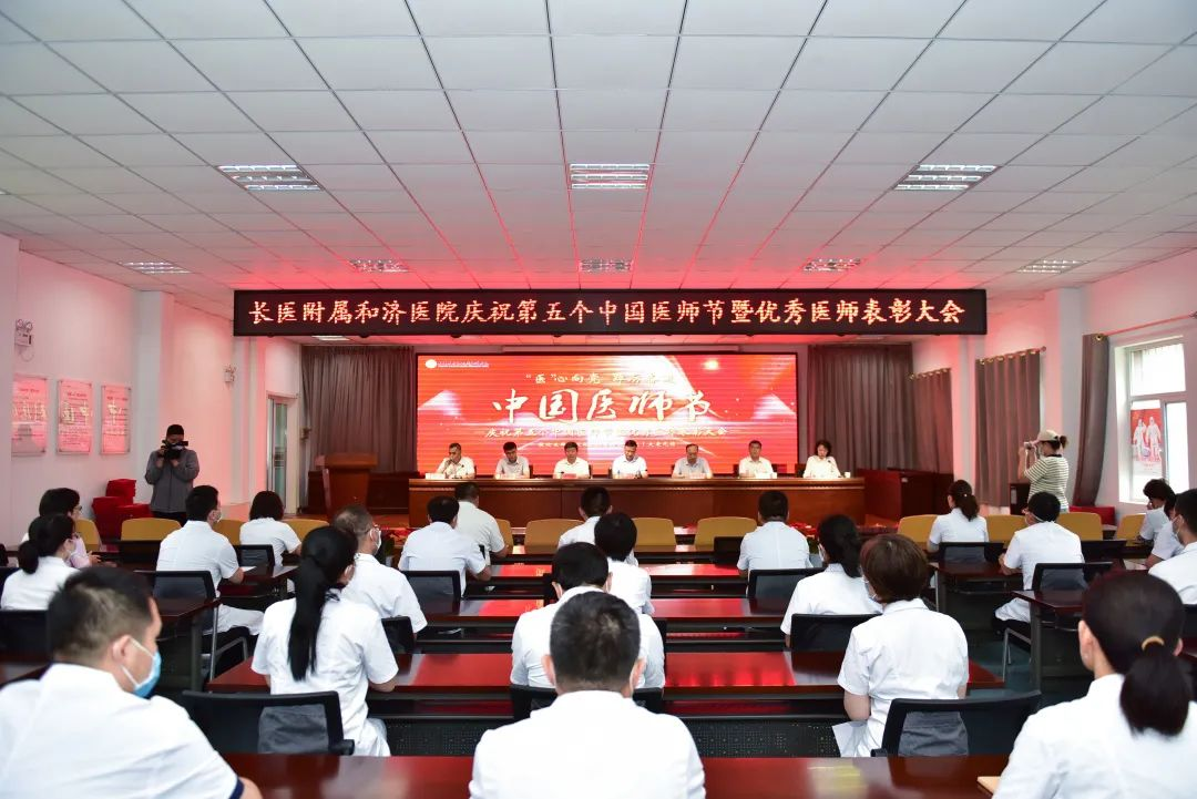 2022年8月19日是第五个“中国医师节”,今年的主题是“‘医’心向党 踔厉奋进”。为表彰先进典型,汲取榜样力量,大力营造尊医重卫的良好社会氛围,以实际行动迎接党的二十大胜利召开,8月18日下午,附属和济医院在医院多功能会议室召开庆祝第五个“中国医师节”暨优秀医师表彰大会。我校党委副书记、校长王金胜,医院党政领导出席会议。医院各党支部书记、各科室主任以及优秀医师代表参加会议。会议由医院副院长牛晓红主持。
