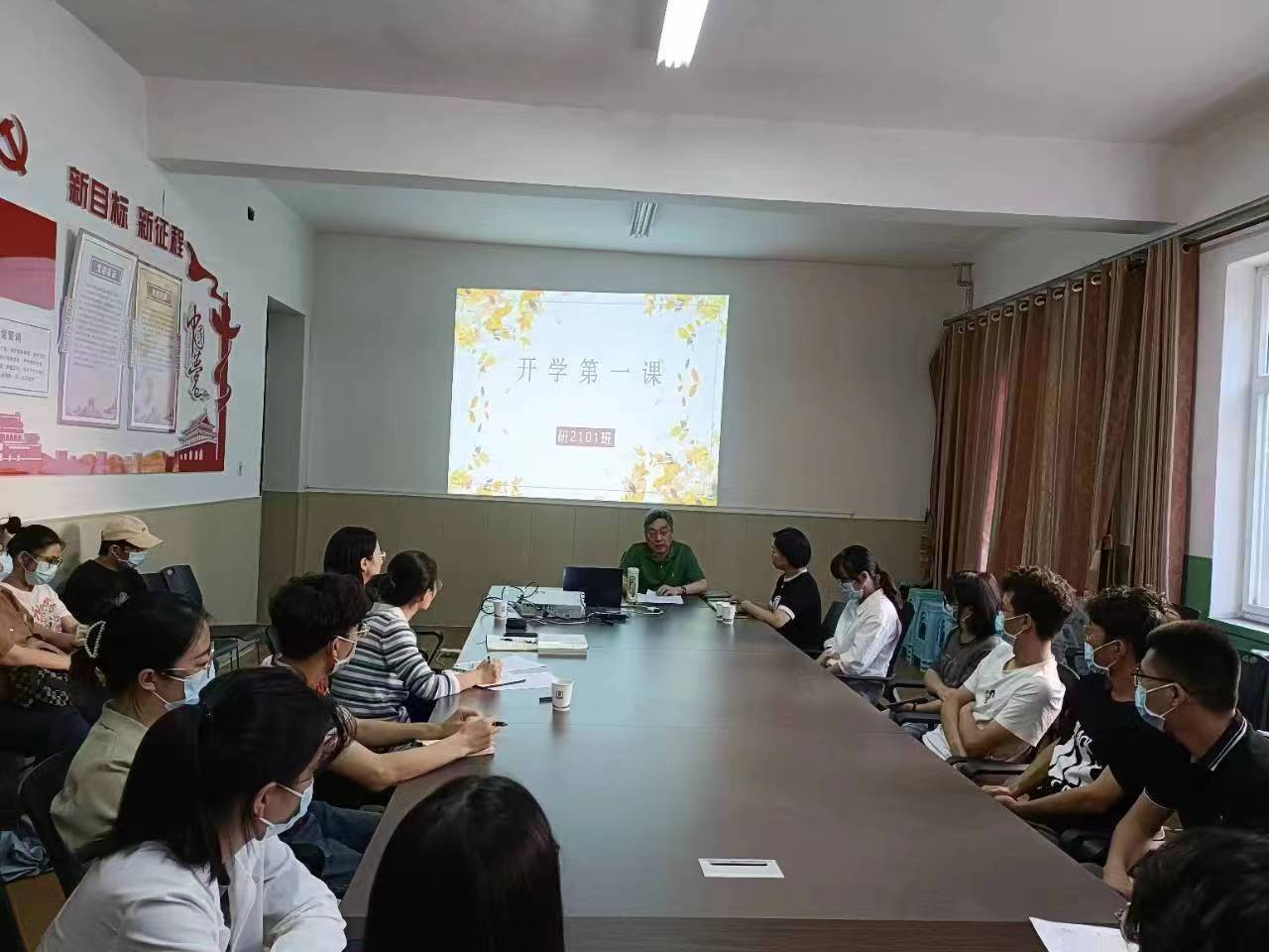 为进一步提升医学研究生对疫情防控重要性的认识,引导同学们以身作则,提高疫情防控意识,9月7日下午,党委常委、副校长郑金平以“服从党中央统一指挥,科学开展疫情防控”为主题,为联系班级研2101班同学们讲授了一节生动而有意义的“开学第一课”。研究生处处长韩玲娜、党总支副书记李萍、辅导员曹雅琴及研2101班全体在校研究生参加。
