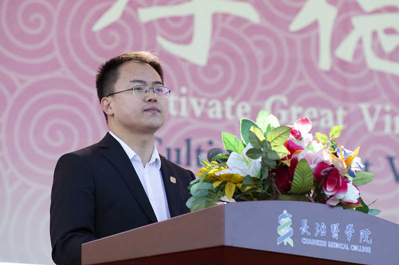 硕士研究生代表王梓翰、第一临床学院临床医学2210班焦雨欣同学分别代表2022级硕士研究生、本科生发言。他们表示,作为新一代长医人要坚持对未知的探索、坚守对梦想的追求,传承红色基因、赓续红色血脉,接好手中的接力棒,不负青春韶华,用实际行动践行“请党放心、强国有我”的铿锵誓言!