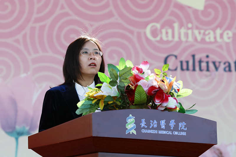 医学教育研究中心主任曹文君代表全体教师向2022级新同学表示热烈欢迎,寄语同学们时刻牢记“健康所系,性命相托”的责任担当,始终践行“厚德、精业、济世、报国”的校训精神,立德、立志、立学,在人生新的起点,不忘初心、牢记使命,敢于筑梦、勇于追梦,为长医腾飞作出贡献。