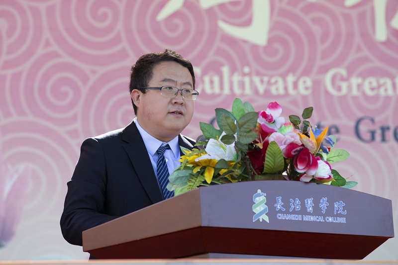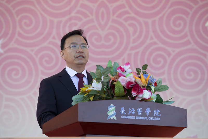 冯丽华代表上党区委、区政府,对我校2022级新生表示热烈欢迎。他说,长医76年来培养出了一批又一批优秀的医护人员,为守护人民健康作出了卓越贡献,希望同学们在最美年华选择奋斗,劈波斩浪、披荆斩棘,珍惜韶华、努力学习,提高内在素质、锤炼过硬本领,用青春激扬理想,用理想点燃奋斗,用奋斗照亮人生。