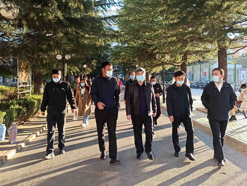 督查组一行先后到五龙校区门卫、快递点、教室、食堂、超市、学生公寓、核酸采样点、值班室,校本部校医室、快递点等校园重点场所开展督查。来到值守门岗,督查组重点检查了校门口进出人员和车辆台账登记册,仔细查看了人员扫码测温、登记信息等情况。来到快递点,详细询问了快递消杀流程和消杀记录。来到食堂,重点查看了相关消杀记录、工作人员核酸采样情况,要求食堂管理人员要做细消杀记录,用心用情做好餐饮服务工作。在学生公寓,督查组随机走进一间宿舍,与学生亲切交谈,叮嘱学生要规律作息,自觉做好个人防护。督查组一行来到教学楼下的核酸采集点,看到学生排队较长、个人防护不到位、现场部分人员间隔距离不够等情况后,督查组现场向管理人员反复强调,要管控好核酸采集现场,不能有麻痹思想、放松的心理,科学规范做好核酸检测工作。