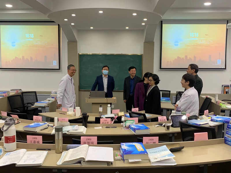 在第四临床学院,郭步平对教学讲座进行了点评,肯定成绩的同时也指出了不足,希望授课教师能在时间安排、课堂互动、重点难点讲授和课件制作方面多下功夫。