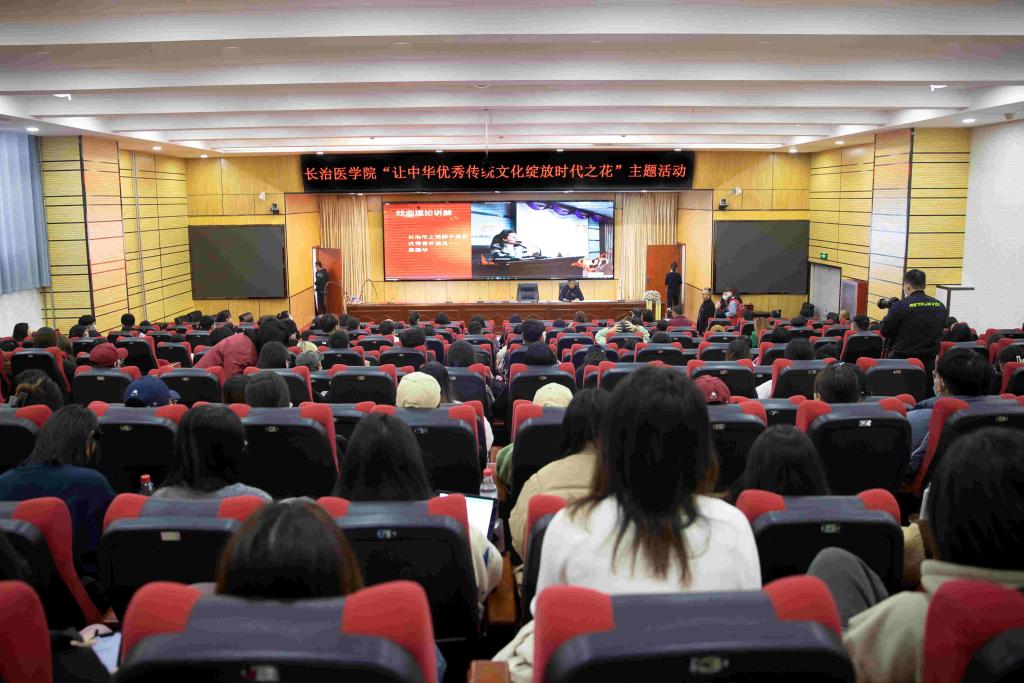 中华优秀传统文化是中华民族的“根”和“魂”,为促进中华优秀传统文化教育在我校健康深入开展,10月29日,由党委宣传部主办,人文艺术传媒系、大学生艺术教育中心承办的“让中华优秀传统文化绽放时代之花”主题活动,在临床技能中心学术报告厅开展。党委副书记、校长王金胜,党委常委、宣传部部长崔红出席活动。来自长治市上党梆子剧团的演员们,为我校师生带来了一场视听盛宴,在学生中间掀起了学习传统戏曲、弘扬传统文化的热潮。
