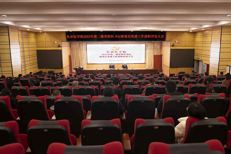 为全面贯彻落实习近平新时代中国特色社会主义思想和党的二十大精神,深入贯彻落实新时代党的建设总要求和新时代党的组织路线,展示学校一年来基层党建工作成果,推动全面从严治党向基层延伸,按照校党委安排,11月25日,我校在临床技能中心学术报告厅召开了2022年度二级党组织书记抓基层党建工作述职评议大会。学校党政领导,各二级党组织书记、副书记,党务部门负责人,各二级院(系)主任、副主任以及教职工代表共计100余人参会。会议由校党委副书记郑金平主持。