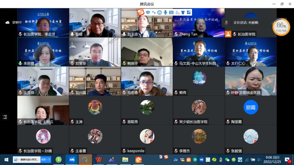 12月25日,由我校主办的第四届老年健康高峰论坛以视频会议形式召开,国内老年健康和衰老领域著名专家学者相聚云端,共襄盛举,为广大师生献上一场精彩纷呈的学术盛宴。论坛由我校党委常委、副校长来丽娜教授、卫健委北京老年医学研究所前任所长黎健教授、华东理工大学赵玉政教授、中山大学马文宾教授,我校老年健康研究中心谭铮教授、鞠振宇教授和王文恭教授主持。
