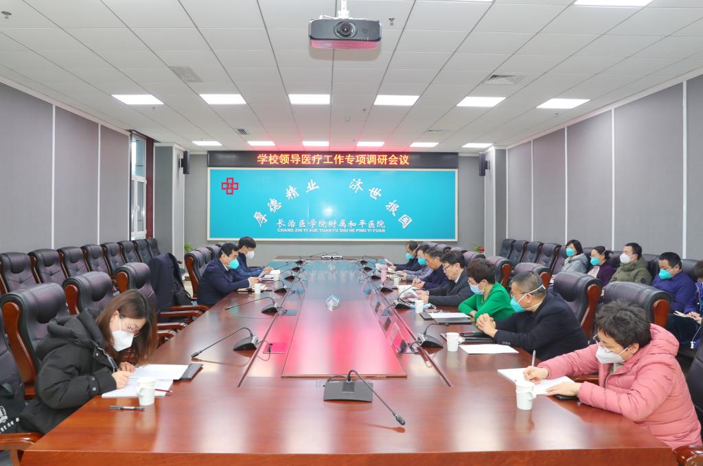 1月6日,在新冠疫情防控新形势、新阶段,党委常委、副校长尚进平深入附属和平医院、附属和济医院,慰问奋战在新冠救治一线的医护人员,对新冠救治工作进行专项调研。附属和平医院、附属和济医院党政班子成员、相关科室负责人参加调研。