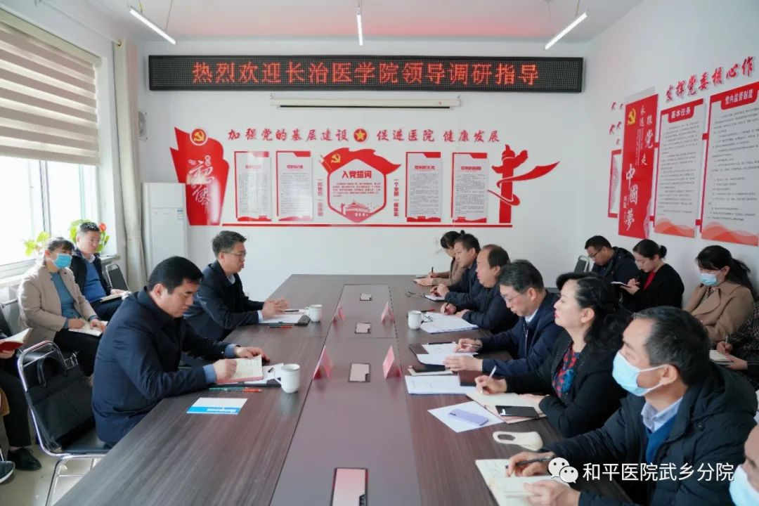 2月21日,党委书记李华荣,党委常委、副校长尚进平深入和平医院武乡分院指导工作。武乡县副县长石永兵陪同调研。该院领导田向阳、魏晓红、王彩霞、郭红亮、刘秀中、王卫峰、李华、李剑锋、魏芳及职能科室负责人参加调研座谈会。