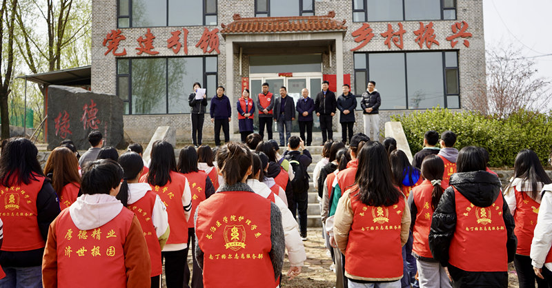 裴振感谢北董村对长医劳动教育的大力支持,向前来参加揭牌仪式的来宾表示热烈的欢迎。他指出,长期以来,学校高度重视大学生劳动教育,始终坚持将劳动实践教育贯穿在人才培养的全过程。塔岭山校外劳动实践基地的建立,对学生强健体魄、磨炼意志、涵养心灵等方面有着重要意义。他希望双方携手并肩,共同策划和开展形式多样的教育实践活动,培养新时代德智体美劳全面发展的社会主义建设者和接班人。