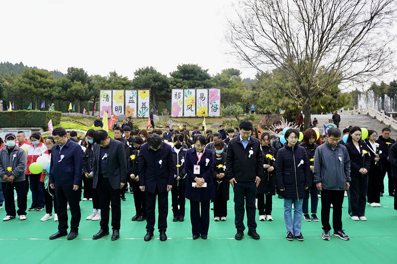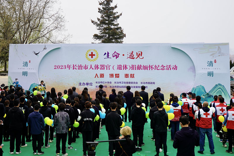 梨花风起正清明,鲜花丝带寄哀思。为大力弘扬“人道、博爱、奉献”的红十字精神,追思、缅怀那些为挽救他人生命、推动医学事业进步而无偿捐献人体器官(遗体)的无言捐献者们,4月2日,长治市红十字会联合市卫健委、市民政局、长治医学院及颐仙园园林文化发展有限公司,在颐仙园公墓举办了以“生命·遇见”为主题的人体器官(遗体)捐献缅怀纪念活动。我校师生代表80余人参加了本次活动。