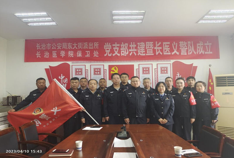 2023年是毛泽东主席在全国推广“枫桥经验”60周年,也是习近平总书记批示深入学习推广“枫桥经验”20周年。为提升全体保卫干部职工的综合素质与业务技能,4月10日,机关第二党总支保卫党支部与长治市公安局东大街派出所党支部举行了支部共建活动,同时,长医义警队成立。