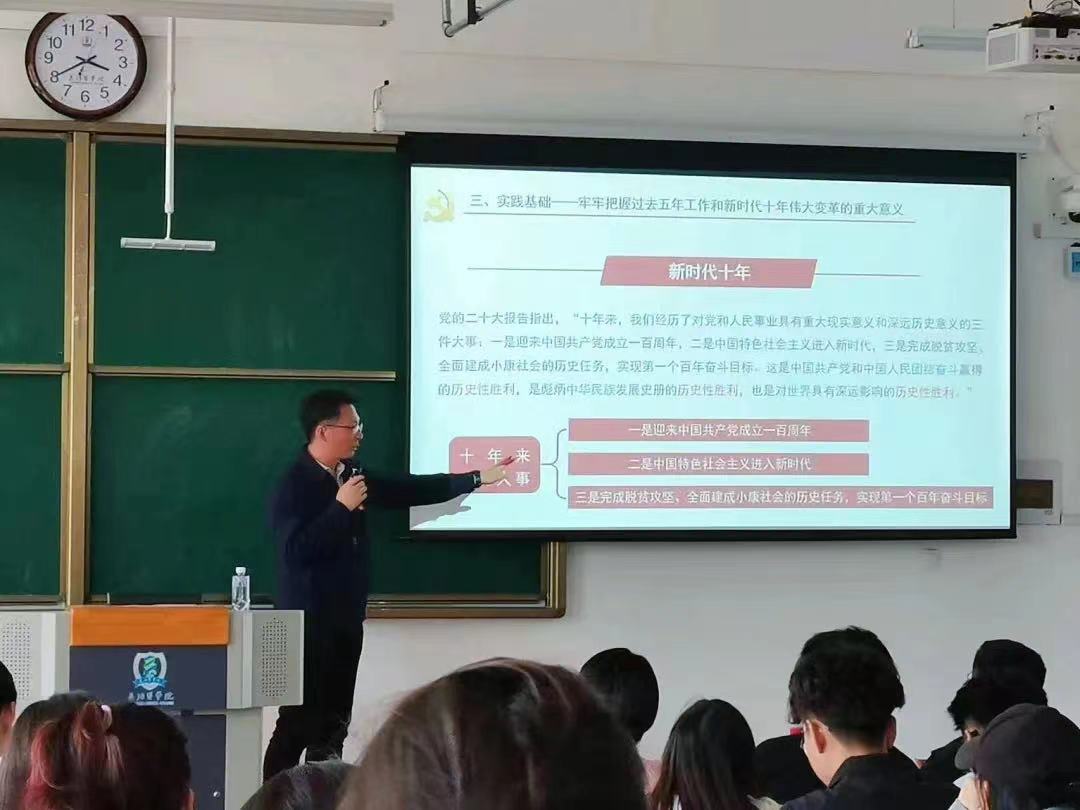 主题教育特邀长治市委党校经管教研室副主任、副教授宋健为“青马”学员作了题为“坚定历史自信,增强历史主动,争做堪当民族复兴重任的时代新人”的培训课。宋健以党的二十大精神为主旨,分别从战略定位、实践基础、理论指导、基本路径、根本保证、团结要求等方面,深入浅出地讲解了党的二十大精神实质,号召青马学员扎实理论学习,夯实思想根基,走好新时代赶考路。他指出,新时代中国青年要坚定理想信念,坚守初心使命、练就过硬本领,勇挑重担、堪当大任,学深悟透党的二十大精神,立志做有理想、敢担当、能吃苦、肯奋斗的新时代好青年,砥砺前行,争先创优,努力成为担当民族复兴大任的时代新人。