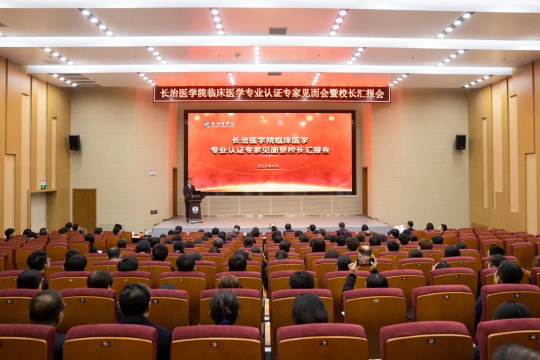 教育部临床医学专业认证专家组组长、上海健康医学院黄钢教授,专家组副组长、齐齐哈尔医学院赵光研究员,专家组成员四川大学华西公共卫生学院曾诚教授、河北医科大学武宇明教授、复旦大学附属中山医院陈世耀教授、北京大学第一医院李岩教授、天津医科大学研究生院李晓霞教授、中南大学本科生院张柯博士、教育部临床医学专业认证工作委员会办公室副主任王媛媛,山西省卫健委二级巡视员刘保升,长治市政府党组成员、副市长秦苏良出席会议。校领导班子成员、医学类专业院系部党政负责人、师生代表、相关职能部门负责人、附属医院领导班子成员110余人参加会议。会议由校党委书记李华荣主持。
