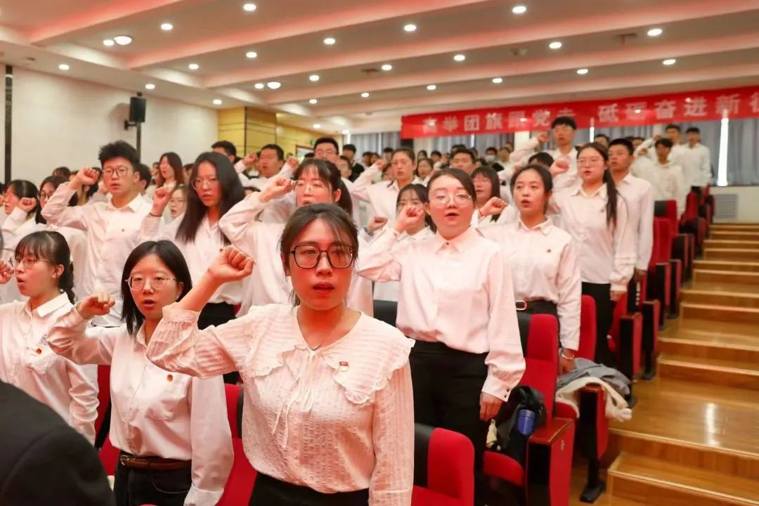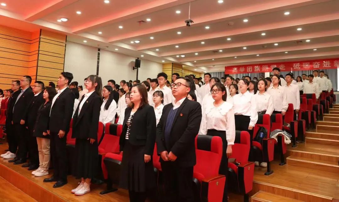 大会在雄壮的国歌声中拉开帷幕,与会人员重温了入团誓词。