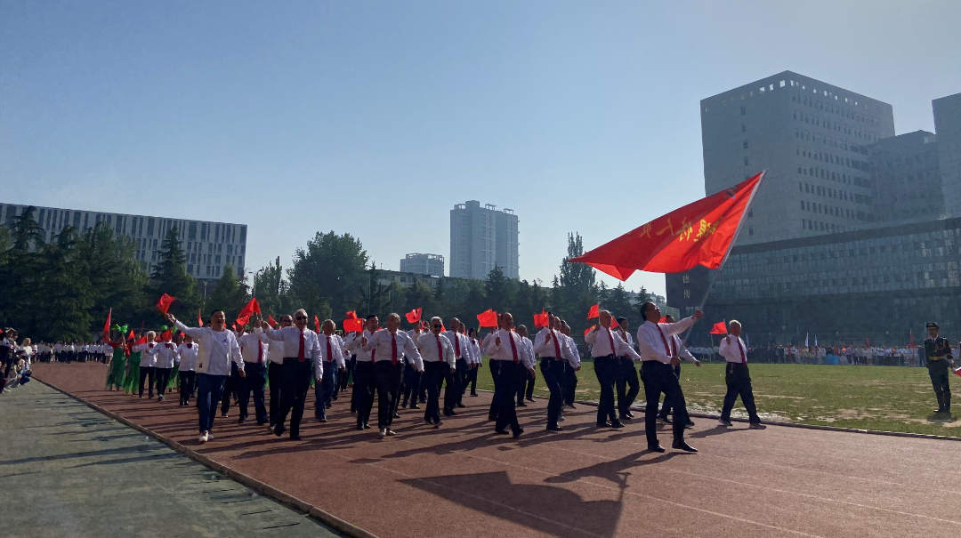 5月12日上午,离退休人员代表队参加了学校2023年春季运动会开幕式,拉开了趣味运动会的序幕。入场式上,老同志们精神抖擞、步伐豪迈,舞蹈表演欢乐精彩,赢得全场热烈掌声,获得“最佳风采奖”。