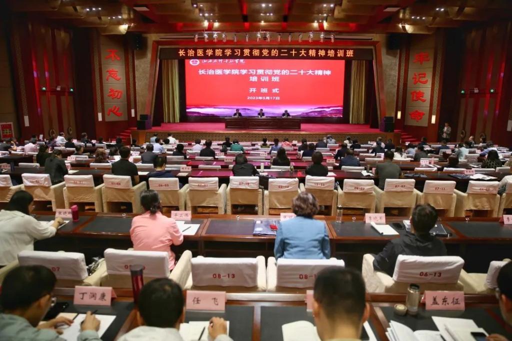 为全面学习贯彻落实党的二十大精神,不断增强运用党的创新理论武装头脑、指导实践、推动工作的政治自觉、思想自觉、行动自觉,进一步理清思路、找准抓手,凝聚共识、真抓实干,汇聚全校上下推动高质量发展的强大合力,5月17日上午,我校学习贯彻党的二十大精神培训班在山西太行干部学院学术报告厅举行开班仪式。校党委书记李华荣,党委副书记郑金平,太行干部学院党委副书记、常务副院长高怀碧出席开班仪式。学校全体处级以上干部、各级党组织书记及专职组织员共计150余人参加本次培训。开班仪式由郑金平主持。