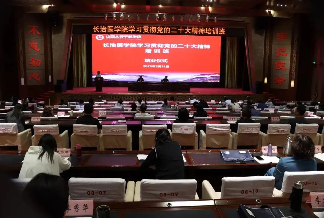 5月21日,长治医学院学习贯彻党的二十大精神培训班在山西太行干部学院圆满结束并举行结业仪式。党委副书记郑金平出席结业仪式并讲话,结业仪式由校党委常委、组织部部长王黎刚主持。