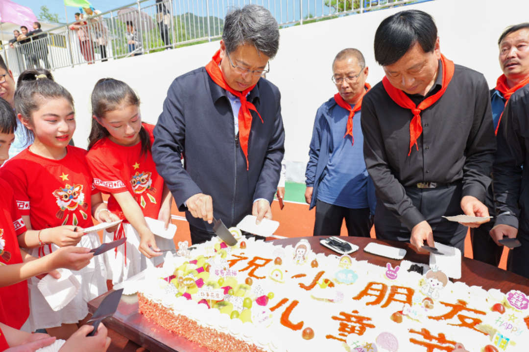 李华荣一行到达寺头村小学,参观了孩子们为自己的节日精心准备的手工制作、书法作品,观看了孩子们表演的文艺节目,并为他们送上了书包文具等节日礼物,为孩子们分发节日蛋糕,与帮扶村幼儿、小学生共同度过了一个欢乐难忘的“六一”儿童节。