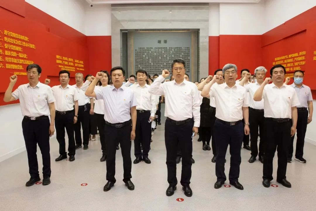 最后,在宣誓厅,党委书记李华荣同志领誓,全体党员干部一起重温了入党誓词。