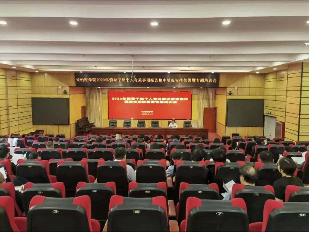 6月12日下午,我校2023年领导干部个人有关事项报告集中填报安排部署暨专题培训会在临床技能中心学术报告厅召开,全校填报范围内的70余名副处级以上干部参加会议。会议由校党委常委、组织部部长王黎刚主持。